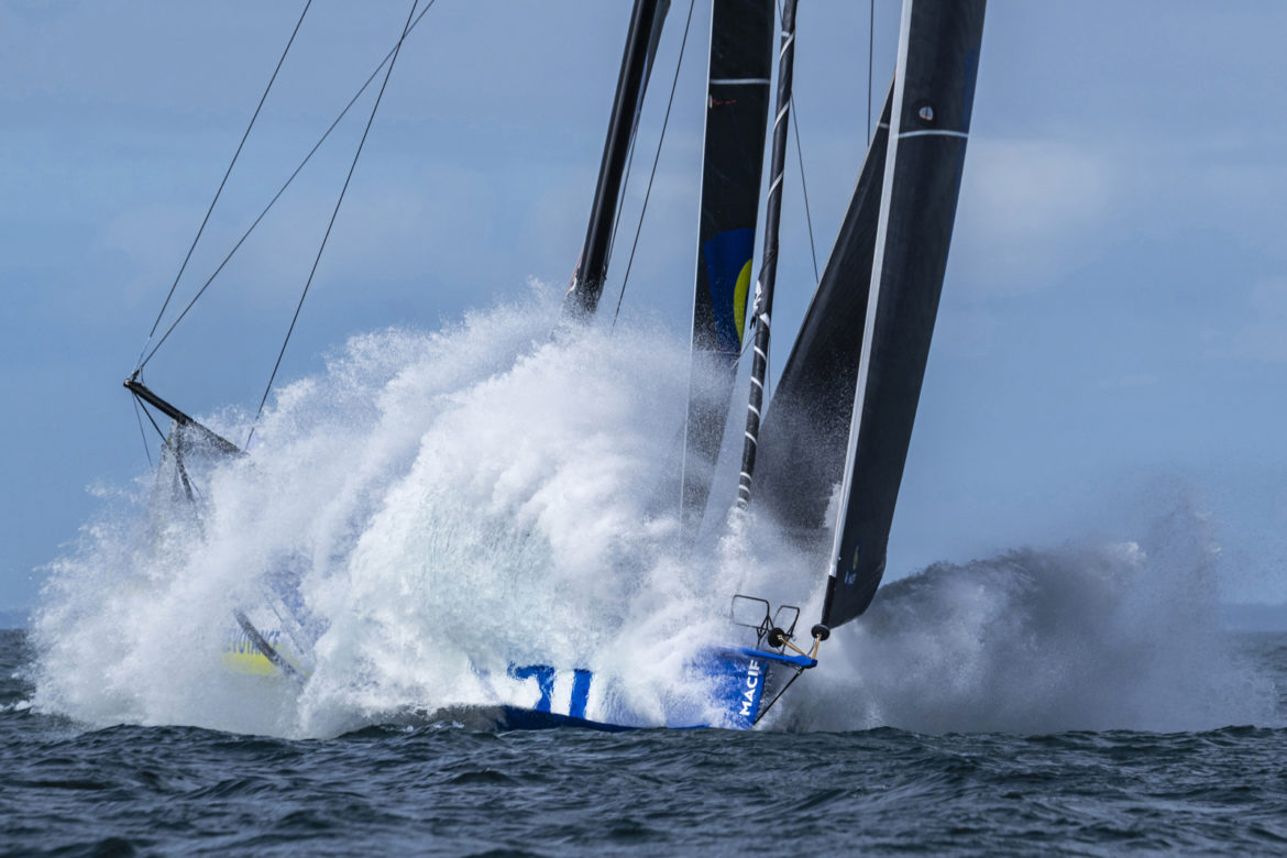 La quinzième édition du Défi Azimut est la première course de la rentrée pour la classe Imoca et débute avec les spectaculaires runs de vitesse entre Lorient et l’ile de Groix remportés par Sam Goodchild et Loïs Berrehar (Macif Santé Prévoyance). Douze voiliers sont engagés, contre 24 l’an passé. Beaucoup de bateaux sont en construction et en vente, d’autres viennent tout juste de terminer l’Océan race Europe. C’est un nouveau cycle qui démarre jusqu’au prochain Vendée Globe en 2028. Cependant le nombre de skippers est le même. Cette année, le défi Azimut se déroule en double mais il est aussi une ultime régate de préparation avant la Transat Café L’Or d’octobre prochain. Sans surprise l’Imoca Macif Santé Prévoyance se montre le plus rapide.
