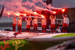 Alexia Barrier et ses équipières internationales – Annemieke Bes, Deborah Blair, Dee Caffari, Tamara Echegoyen, Rebecca Gmuer Hornell, Stacey Jackson et Molly Lapointe – ont établi le premier temps de