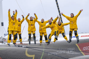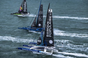 Tom Laperche et son co-skipper Franck Cammas, à bord de l’Ultim SVR-Lazartigue, ont franchi les premiers la ligne d’arrivée en baie de Fort-de-France après 10 jours, 13 heures, 3 minutes et 58 secondes de