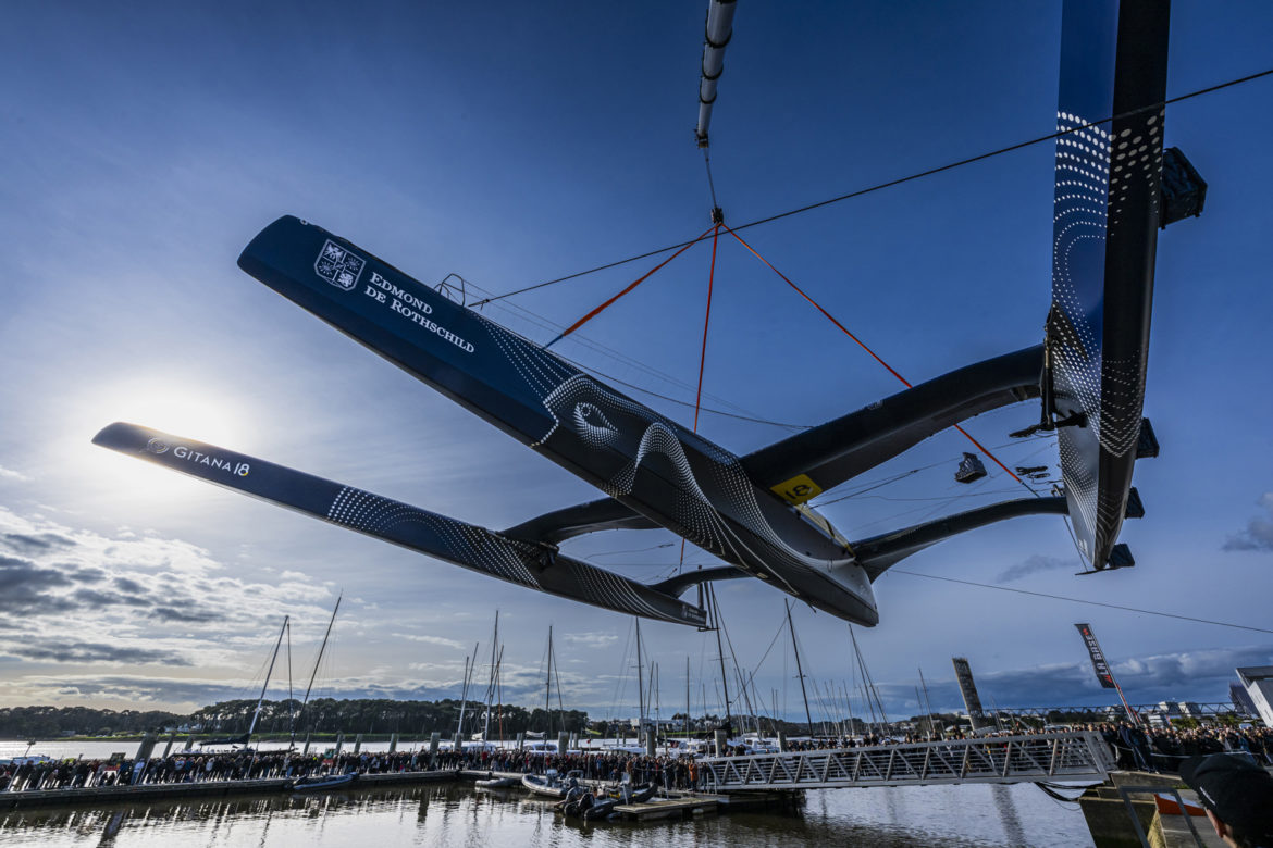 Entre l’eau et l’air, après plus de deux ans de construction le très innovant maxi-trimaran volant Gitana 18 du skipper Charles Caudrelier mis à l’eau à Lorient La base. Les amoureux de voile et de course au large étaient présents en nombre pour saluer l’arrivée de ce nouveau multicoque, le premier de la deuxième génération des Ultim volants.